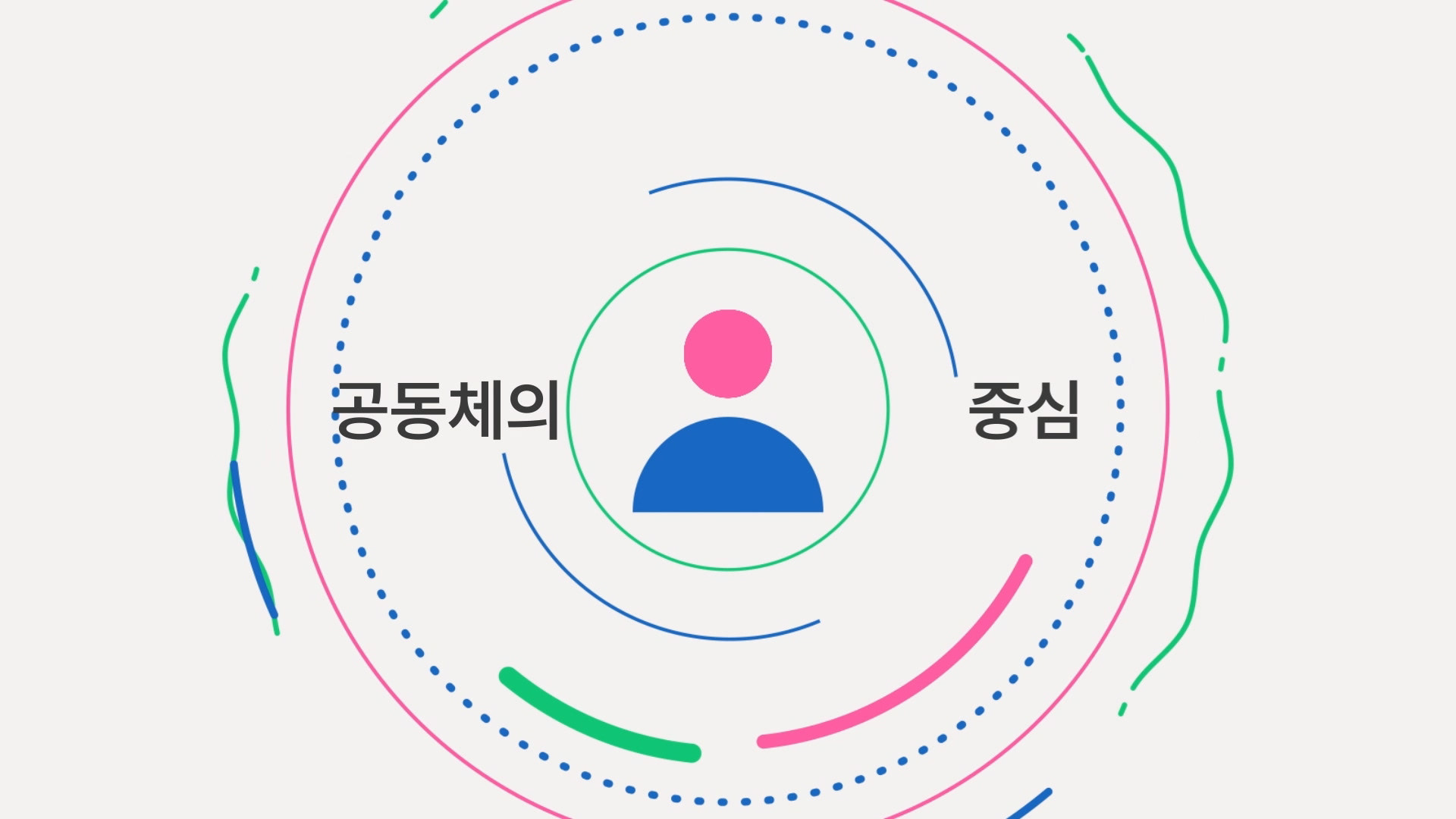 서로 다른 분야의 지식이 하나로 연결되고 지속 가능한 발전을 추구하는 도서관의 역할을 원형의 움직임으로 묘사.